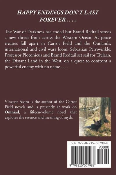 HAPPY ENDINGS DON'T LAST FOREVER . . . . The War of Darkness has ended but Brand Redtail senses a new threat from across the Western Ocean. As peace treaties fall apart in Carrot Field and the Outlands, international and civil wars loom. Sebastian Perriwinkle, Professor Plotonicus and Brand Redtail set sail for Trelaan, the Distant Land in the West, on a quest to confront a powerful enemy with no name . . . . Return to the world of Carrot Field, where mind-bending science-fiction meets epic fantasy adventure! If you love Frank Herbert's DUNE and J.R.R. Tolkien's LORD of the RINGS, you will love Carrot Field!