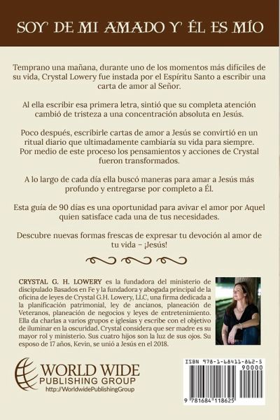 SOY DE MI AMADO Y ÉL ES MÍO Temprano una mañana, durante uno de los momentos más difíciles de su vida, Crystal Lowery fue instada por el Espíritu Santo a escribir una carta de amor al Señor. Al ella escribir esa primera letra, sintió que su completa atención cambió de tristeza a una concentración absoluta en Jesús. Poco después, escribirle cartas de amor a Jesús se convirtió en un ritual diario que ultimadamente cambiaría su vida para siempre. Por medio de este proceso los pensamientos y acciones de Crystal fueron transformados. A lo largo de cada día ella buscó maneras para amar a Jesús más profundo y entregarse por completo a Él. Esta guía de 90 días es una oportunidad para avivar el amor por Aquel quien satisface cada una de tus necesidades. Descubre nuevas formas frescas de expresar tu devoción al amor de tu vida - ¡Jesús!