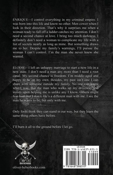 Enrique-I control everything in my criminal empire. I was born into this life and know no other. Men cower when I look in their direction. That's why it surprises me when a woman ready to fall off a ladder catches my attention. I don't need a second chance at love. I bring too much darkness. I definitely don't need a woman to complicate my life with a list of secrets nearly as long as mine. But something draws me to her. Despite my family's warnings, I'll pursue the woman I can't control. I'm the man she never knew she wanted. Elodie-I left an unhappy marriage to start a new life in a new state. I don't need a man any more than I need a root canal. My second chance is freedom. I'm middle-aged and happy to be on my own. Besides, my past isn't one I can share with someone outside my family. No one can know who I was. But the man who walks up my driveway and insists upon helping me is unlike any I know. Others might fear him, but I don't. He's a different man with me. I see the man he wants to be, but only with me. Only fools think they can stand in our way, but they learn the same thing others have before. I'll burn it all to the gr¿ound before I let go. Cartel King is an interconnecting, standalone Dark Mafia Romance with a HEA and no cliffhanger. It contains EXTRA-STEAMY scenes that will make your toes curl and your granny blush. The Cartel Brotherhood is a six-book series that'll keep you warm at night. Enjoy a bonus epilogue only included in paperback. Discover the four NYC rival families that make up The Syndicate Wars world. Each family has their turn to be heroes in their own series. When it's not their family's turn for love, discover whether they're the villain. You'll meet all 24 men of the Four Families throughout the interconnected series, each taking their turn to fall in love. By the end, you'll have a love/hate relationship with them all. The Ivankov Brotherhood The Mancinelli Brotherhood The O'Rourke Brotherhood The Cartel Brotherhood