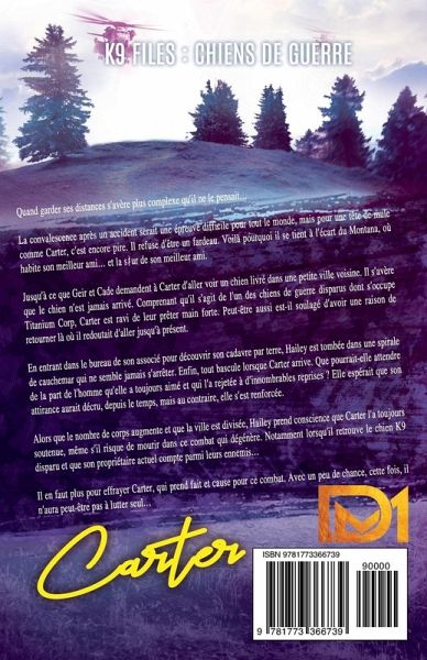Quand garder ses distances s'avère plus complexe qu'il ne le pensait... La convalescence après un accident serait une épreuve difficile pour tout le monde, mais pour une tête de mule comme Carter, c'est encore pire. Il refuse d'être un fardeau. Voilà pourquoi il se tient à l'écart du Montana, où habite son meilleur ami... et la s¿ur de son meilleur ami. Jusqu'à ce que Geir et Cade demandent à Carter d'aller voir un chien livré dans une petite ville voisine. Il s'avère que le chien n'est jamais arrivé. Comprenant qu'il s'agit de l'un des chiens de guerre disparus dont s'occupe Titanium Corp, Carter est ravi de leur prêter main forte. Peut-être aussi est-il soulagé d'avoir une raison de retourner là où il redoutait d'aller jusqu'à présent. En entrant dans le bureau de son associé pour découvrir son cadavre par terre, Hailey est tombée dans une spirale de cauchemar qui ne semble jamais s'arrêter. Enfin, tout bascule lorsque Carter arrive. Que pourrait-elle attendre de la part de l'homme qu'elle a toujours aimé et qui l'a rejetée à d'innombrables reprises ? Elle espérait que son attirance aurait décru, depuis le temps, mais au contraire, elle s'est renforcée. Alors que le nombre de corps augmente et que la ville est divisée, Hailey prend conscience que Carter l'a toujours soutenue, même s'il risque de mourir dans ce combat qui dégénère. Notamment lorsqu'il retrouve le chien K9 disparu et que son propriétaire actuel compte parmi leurs ennemis... Il en faut plus pour effrayer Carter, qui prend fait et cause pour ce combat. Avec un peu de chance, cette fois, il n'aura peut-être pas à lutter seul...