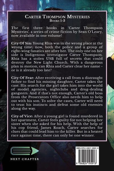 The first three books in 'Carter Thompson Mysteries', a series of crime fiction by Sean O'Leary, now available in one volume! City Of Sin: Young Rhia was in the wrong place at the wrong time; now, both the police and a group of right-wing fanatics are after her. The only one on her side is Indigenous investigator Carter Thompson. Rhia has a stolen USB full of secrets that could destroy the New Light Church. With a dangerous plan in motion, can Rhia and Carter clear her name - or is it already too late? City Of Fear: After receiving a call from a distraught father to find his missing daughter, Carter takes the case. His search for the girl takes him into the world of model agencies, nightclubs and drug-dealing gangsters. And if that's not enough, Carter's old boss from the Prosecutors Office also needs him to help out with his son. To solve the cases, Carter will need to trust his instincts and defeat some old enemies along the way. City of Vice: After a young girl is found murdered in her apartment, Carter feels guilty for not helping her sister when she asked for his help. With the help of his cop friend, James Roach, Carter searches for clues that could lead him to the killer. But in a heated race against time, there can only be one winner.