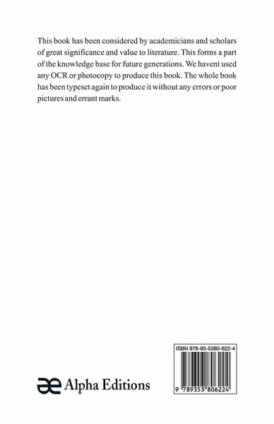 This book has been considered by academicians and scholars of great significance and value to literature. This forms a part of the knowledge base for future generations. We have represented this book in the same form as it was first published. Hence any marks seen are left intentionally to preserve its true nature.