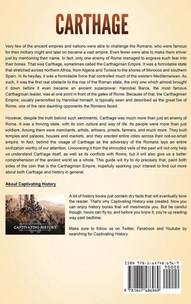 If you want to discover the captivating history of the Carthage, then keep reading... Very few of the ancient empires and nations were able to challenge the Romans, who were famous for their military might. Even fewer were able to make them shiver just by mentioning their name. In fact, only one enemy of Rome managed to engrave such fear into their bones. That was Carthage, sometimes called the Carthaginian Empire. It was a formidable state that stretched across northern Africa, from Algeria and Tunisia to the shores of Morocco and southern Spain. In its heyday, it was a formidable force that controlled much of the western Mediterranean. As such, it was the first real obstacle to the rise of the Roman state, the only one which almost brought it down before it even became an ancient superpower. Hannibal Barca, the most famous Carthaginian leader, was at one point in front of the gates of Rome. Because of that, the Carthaginian Empire, usually personified by Hannibal himself, is typically seen and described as the great foe of Rome, one of the rare daunting opponents the Romans faced. However, despite the truth behind such sentiments, Carthage was much more than just an enemy of Rome. It was a thriving state, with its own culture and way of life. Its people were more than just soldiers. Among them were merchants, artists, artisans, priests, farmers, and much more. They built temples and palaces, houses and markets, and they erected entire cities across their not-so-small empire. In fact, behind the visage of Carthage as the adversary of the Romans lays an entire civilization worthy of our attention. Uncovering it from the shrouded veils of the past will not only help us understand Carthage itself, as well as its conflicts with Rome, but it will also give us a better comprehension of the ancient world as a whole. This guide will try to do precisely that, paint both sides of the coin that is the Carthaginian Empire, hopefully sparking your interest to find out more about both Carthage and history in general. In Carthage: A Captivating Guide to the Carthaginian Empire and Its Conflicts with the Ancient Greek City-States and the Roman Republic in the Sicilian Wars and Punic Wars, you will discover topics such as A New City in the West Becoming a Mediterranean Power Fighting for Control over Sicily From Allies to Enemies From Allies to Enemies Succumbing to the Wounds The Carthaginian Society and Government Army of the Carthaginian Republic The Punic Civilization And much, much more! So if you want to learn more about the Carthage, scroll up and click the "add to cart" button!