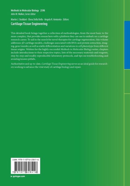 Cartilage Tissue Engineering: An Introduction.- Chondrocyte Isolation and Expansion.- Isolation of Chondrons from Hyaline Cartilage.- Articular Cartilage Chondroprogenitors: Isolation and Directed Differentiation.- Physioxic Culture of Chondrogenic Cells.- Isolation and In Vitro Chondrogenic Differentiation of Human Bone Marrow-Derived Mesenchymal Stromal Cells.- Adipose-Derived Stromal Cells: Isolation, Expansion, and Differentiation.- Chondrogenic Differentiation of Human Induced Pluripotent Stem Cells.- The Dimethylmethylene Blue Assay (DMMB) for the Quantification of Sulphated Glycosaminoglycans.- Extracellular Vesicle Isolation and Characterization for Applications in Cartilage Tissue Engineering and Osteoarthritis Therapy.- Metabolomic Profiling to Understand Chondrocyte Metabolism.- Techniques for Visualization and Quantification of Primary Cilia in Chondrocytes.- Co-Culture of Human Articular Chondrocytes Seeded in Polyurethane Scaffolds and Human Mesenchymal Stromal Cells Encapsulated in Alginate Beads.- Isolation of Murine Articular Chondrocytes for Single Cell RNA or Bulk RNA Sequencing Analysis.- Modulation of MicroRNA Expression during In Vitro Chondrogenesis.- Purification and Isolation of Proteins from Hyaline Cartilage.- Histological Preparation and Evaluation of Cartilage Specimens.- Articular Cartilage Imaging in the Context of the Superficial Chondrocyte Spatial Organization (SCSO) as a Surrogate Marker for Functional Pathology.- Unconfined Compression Experimental Protocol for Cartilage Explants and Hydrogel Constructs: From Sample Preparation to Mechanical Characterization.- Viral Gene Delivery in Chondrocytes.- Decellularization of Articular Cartilage: A Hydrochloric Acid-Based Strategy.- Self-Assembly Culture Model for Engineering Musculoskeletal Tissues.- Osteochondral Explants Isolation and Culture under a Compression and Shear Bioreactor.- A Mouse Model of Acute Cartilage Injury and Repair.- Small-Animal Compression Models of Osteoarthritis.- Modelling and Assessing Osteoarthritis in Mice by Destabilization of the Medial Meniscus (DMM).- Collagenase-Induced Osteoarthritis in Mice.- Platelet-Rich Plasma for Intra-Articular Injections: Preclinical and Clinical Evidence.