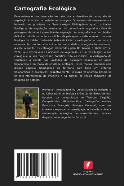 Este volume é uma descrição dos princípios e objectivos da cartografia da vegetação à escala da unidade de paisagem. O processo de mapeamento é baseado nos princípios da fitossociologia. Distinguimos quatro unidades tipológicas de vegetação aninhadas, da comunidade vegetal à célula de paisagem, da série à geossérie de vegetação. A cartografia tem por objetivo delimitar prioritariamente as células da paisagem e relacioná-las com uma tipologia de habitat conhecida. Antes de iniciar a cartografia de uma zona, é essencial ter um bom conhecimento das unidades de vegetação presentes. A este respeito, os catálogos elaborados pelo Dr. Aouadj e Khatir (2017-2024), que descrevem as unidades de vegetação, a sua distribuição, a sua ecologia e a sua progressão florística, são essenciais. A cartografia da vegetação à escala das unidades de paisagem baseia-se no mapa fisionómico e no mapa do envelope ecológico. Estes mapas propõem uma divisão espacial homogénea do território com base em critérios fisionómicos e ecológicos, respetivamente. O mapa fisionómico baseia-se na foto-interpretação de imagens e na análise de séries temporais de imagens de satélite.