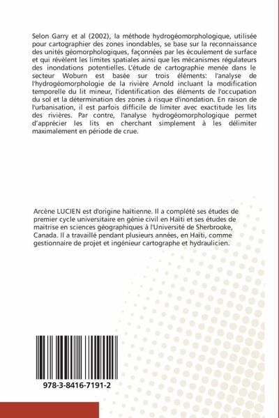 Selon Garry et al (2002), la méthode hydrogéomorphologique, utilisée pour cartographier des zones inondables, se base sur la reconnaissance des unités géomorphologiques, façonnées par les écoulement de surface et qui révèlent les limites spatiales ainsi que les mécanismes régulateurs des inondations potentielles. L'étude de cartographie menée dans le secteur Woburn est basée sur trois éléments: l'analyse de l'hydrogéomorphologie de la rivière Arnold incluant la modification temporelle du lit mineur, l'identification des éléments de l'occupation du sol et la détermination des zones à risque d'inondation. En raison de l'urbanisation, il est parfois difficile de limiter avec exactitude les lits des rivières. Par contre, l'analyse hydrogéomorphologique permet d'apprécier les lits en cherchant simplement à les délimiter maximalement en période de crue.
