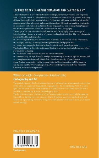 Theory. Art and Cartographic Communication. Rejecting Illusionism: Transforming Space into Maps and into Art. From a Cartographic Glance to Synchronistic Experiences. Marriage and Divorce: Is the Evolution of Landscape Paintings Ending in the Fields of Topographic Cartography and Graphic Design?. Maps and Mapping in the Eyes of Artists and Cartographers#x2013;Experiences from the International Symposium on Cartography and Art. Aesthetics and Cartographic Design. Are we Living in a Cartographic Illiterate Society?. Aesthetics of the CORINE Land Cover Maps. Making Legends By Means of Painters#x2019; Palettes. What Can We Learn from the Masters? Color Schemas on Paintings as the Source for Color Ranges Applicable in Cartography. The Role of Augmented Elements to Support Aesthetic and Entertaining Aspects of Interactive Maps on the Web and Mobile Phones. Variables of Aesthetics in Maps. Art and the History of Cartography. World Views: Art and Canonical Images in the Geographical and Life Sciences. Map Style. The World Image in Maps #x2013; From the Old Ages to Mercator. Integrated Media. Mapping Literature: Towards a Geography of Fiction. Challenging the Digital Cartographic Continuity System: Lessons from Cinema. On Written Language in Works of Art and Cartography. Imagining Europe. Non Graphics. Dots, Lines, Areas and Words: Mapping Literature and Narration (With some Remarks on Kate Chopin#x2019;s #x201C;The Awakening#x201D;). Robert Smithson#x2019;s Pursuit: Mapping some Traces of Remnants. Towards a Literary Geography of the Interwar Australian Novel. Mapping Informal Geographies. Mapping the Sacred Landscape of Lahaul #x2013; The Karzha Khandroling Mandala. Art and Media Design. Sculpting Place Through Ceramic Maps. The Map of Fashion. Maps of What Might Be: A Dozen Works on Ideas and Possibilities. On Sustenance: Operating Landscapes, Land Spaces and Land#x2019;s Paces. Social Tapestries. Community Karlsplatz, ViennaVideo Screen Projection. 4816 #x2013; Urban Expeditions in Vienna Along the GPS Matrix. Installation Art. Dream but Conflict. Pressure Today. Early Modern Portuguese Maps: Metaphors of Space and Spaces of Metaphor. This Is Not a Map.