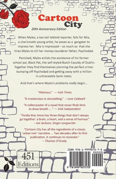 For a classic urban sass novel, cult hit Cartoon City by Ferdia Mac Anna is hard to beat, with its wild cast of misfits, rebels and Dublin denizens. Anti-hero Myles seeks an out from his journo work. When he falls for the redoubtable Mia, however, he is drawn into the heart of Dublin's underworld with some alarming - and hilarious - consequences. Ferdia Mac Anna's career has brought him from comic writing to memoir, literary fiction and film direction. This is his third novel, originally published by Headline in 2000. It romps through a comic tale of crime, passion and surreal humour at breakneck pace. With an eye for characterisation and a flair for Dublinese, it pogos along like Flann O'Brien with rock'n'roll. This second edition of Cartoon City from 451 Editions - is now available to coincide with its twentieth anniversary.