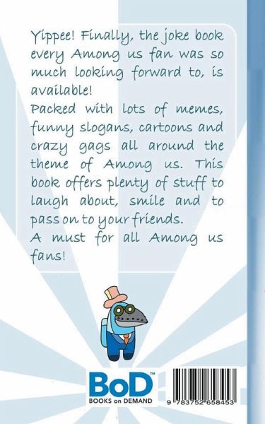 Yippee! Finally, the joke book every Among us fan was so much looking forward to, is available! Packed with lots of memes, funny slogans, cartoons and crazy gags all around the theme of Among us. This book offers plenty of stuff to laugh about, smile and to pass on to your friends. A must for all Among us fans!