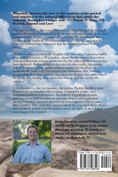 The year is 1722 in the young Province of New Hampshire. Scottish pioneer Cornelius Campbell fulfills his vow to settle his family on the contested New England frontier. Haunted by the sacrifice of his brother at the battle of Sherrifmuir, he forges ahead, carving a life from the unforgiving wilderness that has broken so many before them. Despite conflicts between the English and Abenakis, Cornelius builds trust with Chocorua, a Pequawket, whose family isolates themselves from hostilities yet remain tormented by the suffering their loved ones have endured. As Cornelius settles into this new reality, his strong-willed daughter, Grace, defies societal norms and develops an unbreakable bond with Chocorua's son, Towamba. But, as their relationship blossoms, tensions rise when the Boston Assembly enacts the Scalp Act, setting off a chain reaction of violence across the region. Unbeknownst to the two families, the outlaw Puddle brothers from Portsmouth are headed toward them, looking for scalps, on a misguided path to redemption. As violence engulfs the frontier, grievous losses and treacherous acts sow despair and confusion, pitting Cornelius against Chocorua in a race against time to save their families. The clues they unravel along the way lead them deeper into a web of secrets and deception, where the fates of their loved ones hang in the balance.