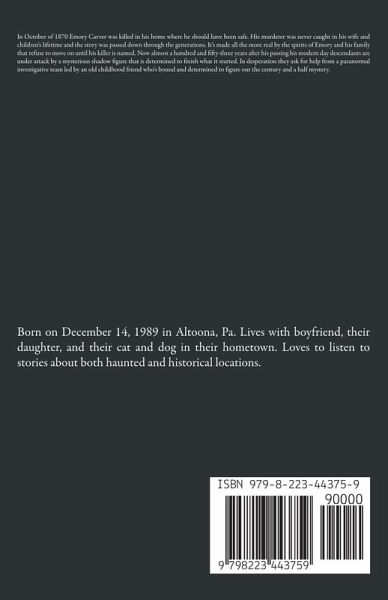 In October of 1870 Emory Carver was killed in his home where he should have been safe. His murderer was never caught in his wife and children's lifetime and the story was passed down through the generations. It's made all the more real by the spirits of Emory and his family that refuse to move on until his killer is named. Now almost a hundred and fifty-three years after his passing his modern day descendants are under attack by a mysterious shadow figure that is determined to finish what it started. In desperation they ask for help from a paranormal investigative team led by an old childhood friend who's bound and determined to figure out the century and a half mystery.