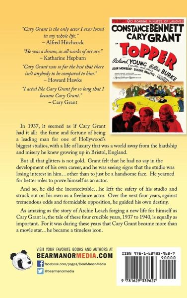 "Cary Grant is the only actor I ever loved in my whole life." - Alfred Hitchcock "He was a dream, as all works of art are." - Katharine Hepburn "Cary Grant was so far the best that there isn't anybody to be compared to him." - Howard Hawks "I acted like Cary Grant for so long that I became Cary Grant." - Cary Grant In 1937, it seemed as if Cary Grant had it all: the fame and fortune of being a leading man for one of Hollywood's biggest studios, with a life of luxury that was a world away from the hardship and misery he knew growing up in Bristol, England. But all that glitters is not gold. Grant felt that he had no say in the development of his own career, and he was seeing signs that the studio was losing interest in him...other than to just be a handsome face. He yearned for better roles to prove himself as an actor. And so, he did the inconceivable...he left the safety of his studio and struck out on his own as a freelance actor. Over the next four years, against tremendous odds and formidable opposition, he guided his own destiny. As amazing as the story of Archie Leach forging a new life for himself as Cary Grant is, the tale of these four crucible years, 1937 to 1940, is equally as important. For it was during these years that Cary Grant became more than a movie star...he became a timeless icon.