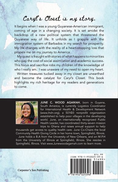 Caryl's Closet is the story of a young Guyanese-American immigrant, June Wood Agamah, coming of age in a changing society. Her story is set amidst the backdrop of a new political system that threatens the Guyanese way of life. It unfolds as she grapples with the immigration systems of Guyana and Barbados in her search for prosperity. Her life changes with the reality of a heart-stopping loss that propels her on her journey to America. Her quest is fraught with stories of what happens to minorities who pay the cost of social assimilation and academic success. This focus and sacrifice robs her children of the knowledge of who she really is. June is unaware of her need to open her heart. Written treasures, tucked away in her closet are unearthed and become the catalyst for Caryl's Closet.