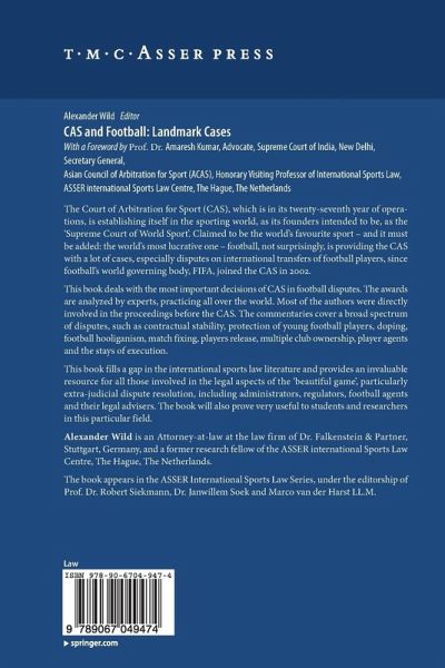 FIFA has accepted the jurisdiction of the CAS as from 11 November 2002. This date does not mark the beginning of the arbitration of the CAS in football matters, however it has to be stated, that from this date on football disputes in front of the CAS increased enormously. This book is dedicated to the most important decisions of the CAS in football disputes. These awards are analyzed by experts, practicing all over the world. Most of the authors have been directly involved in the proceedings before the CAS. The commentaries cover a broad spectrum of disputes, inter alia, disputes concerning the contractual stability, protection of young football players, doping, football hooliganism, match fixing, players release, multiple club ownership, player agents and the stays of execution. This book provides a wide range of valuable information and is a useful tool for those whose main concern is professional football, such as sports lawyers, sports managers and sports agents, but also academicsand researchers. The book appears in the ASSER International Sports Law Series, under the editorship of Dr. Robert Siekmann, Dr. Janwillem Soek and Marco van der Harst LL.M.