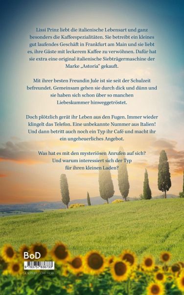 Lissi Prinz liebt die italienische Lebensart und ganz besonders die Kaffeespezialitäten. Sie betreibt ein kleines gut laufendes Geschäft in Frankfurt am Main und sie liebt es, ihre Gäste mit leckerem Kaffee zu verwöhnen. Dafür hat sie extra eine original italienische Siebträgermaschine der Marke "Astoria" gekauft. Mit ihrer besten Freundin Jule ist sie seit der Schulzeit befreundet. Gemeinsam gehen sie durch dick und dünn und sie haben sich schon über so manchen Liebeskummer hinweggetröstet. Doch plötzlich gerät ihr Leben aus den Fugen. Immer wieder klingelt das Telefon. Eine unbekannte Nummer aus Italien! Und dann betritt auch noch ein Typ ihr Café und macht ihr ein ungeheuerliches Angebot. Was hat es mit den mysteriösen Anrufen auf sich? Und warum interessiert sich der Typ für ihren kleinen Laden?