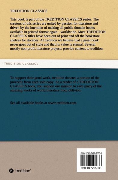 This book is part of the TREDITION CLASSICS series. The creators of this series are united by passion for literature and driven by the intention of making all public domain books available in printed format again - worldwide. At tredition we believe that a great book never goes out of style. Several mostly non-profit literature projects provide content to tredition. To support their good work, tredition donates a portion of the proceeds from each sold copy. As a reader of a TREDITION CLASSICS book, you support our mission to save many of the amazing works of world literature from oblivion.