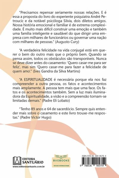 ¿Precisamos repensar seriamente nossas relações. E e¿ essa a proposta deste livro do experiente psiquiatra Andre¿ Petroucic e da notável psicóloga Silvia, dois diletos amigos. Nossa história emocional e familiar e¿ de extrema complexidade. E¿ muito mais difícil construir uma emoção e também uma família inteligente e saudável do que dirigir uma empresa com milhares de funcionários ou governar uma nação com milhares de pessoas. ¿ (Augusto Cury)