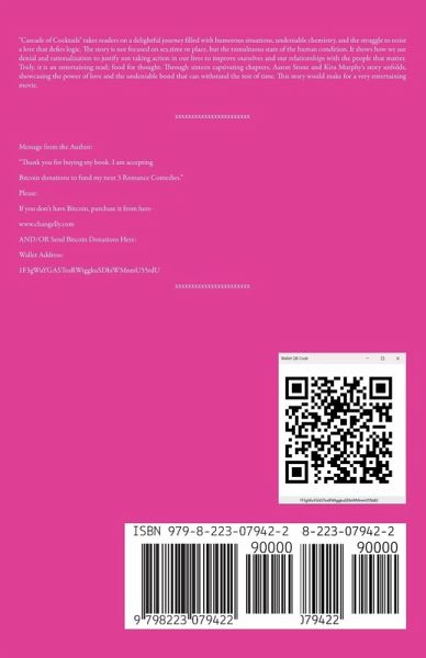 "Cascade of Cocktails" takes readers on a delightful journey filled with humorous situations, undeniable chemistry, and the struggle to resist a love that defies logic. The story is not focused on sex,time or place, but the tumultuous state of the human condition. It shows how we use denial and rationalization to justify not taking action in our lives to improve ourselves and our relationships with the people that matter. Truly, it is an entertaining read; food for thought. Through sixteen captivating chapters, Aaron Stone and Kira Murphy's story unfolds, showcasing the power of love and the undeniable bond that can withstand the test of time. This story would make for a very entertaining movie.
