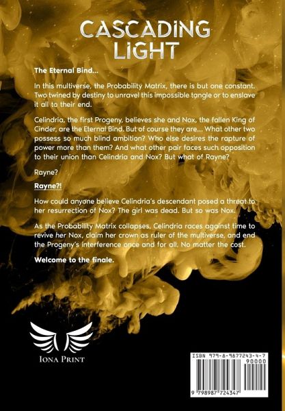 The Eternal Bind... In this multiverse, the Probability Matrix, there is but one constant. Two twined by destiny to unravel this impossible tangle or to enslave it all to their end.Celindria, the first Progeny, believes she and Nox, the fallen King of Cinder, are the Eternal Bind. But of course they are... What other two possess so much blind ambition? Who else desires the rapture of power more than them? And what other pair faces such opposition to their union than Celindria and Nox? But what of Rayne?Rayne?Rayne?!How could anyone believe Celindria's descendant posed a threat to her resurrection of Nox? The girl was dead. But so was Nox.As the Probability Matrix collapses, Celindria races against time to revive her Nox, claim her crown as ruler of the multiverse, and end the Progeny's interference once and for all. No matter the cost.Welcome to the finale.
