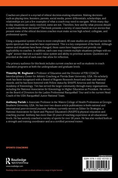 This book presents cases based on true stories that present some of the ethical decisions coaches must make across high school, collegiate, and professional sports. Each case contains multiple situations perhaps with no "right" answer that test a coachâ s value system and ability to prioritize actions. Questions are provided for reflection.