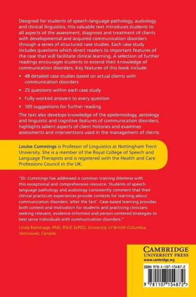 Designed for students of speech-language pathology, audiology and clinical linguistics, this valuable text introduces students to all aspects of the assessment, diagnosis and treatment of clients with developmental and acquired communication disorders through a series of structured case studies. Each case study includes questions which direct readers to important features of the case that will facilitate clinical learning. A selection of further readings encourages students to extend their knowledge of communication disorders. Key features of this book include: ¿ 48 detailed case studies based on actual clients with communication disorders ¿ 25 questions within each case study ¿ Fully-worked answers to every question ¿ 105 suggestions for further reading The text also develops knowledge of the epidemiology, aetiology, and linguistic and cognitive features of communication disorders, highlights salient aspects of client histories, and examines assessments and interventions used in the management of clients.