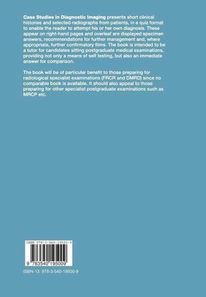 Imaging now plays an integral part in most diagnostic pathways. A familiarity with plain-film abnormalities and the more specialised modalities such as computerised tomography, ultrasound, nuclear medicine and magnetic resonance is an important part of the clinician's "medical knowledge", and a sound grasp of the subject is expected in postgraduate examinations. This book is primarily intended as a study guide for film interpretation in postgraduate examinations, especially the MRCP and FRCR exams. The layout of the questions follows the format of the examination of the Royal College of Radiologists. On right-hand pages brief clinical details and one or more imaging examples are presented for the candidate to analyse and report. In each case specimen answers with comments and, where necessary, further illustrations, are shown on the following left-hand page. This text cannot be comprehensive, but it should form a foundation for future study. Finally, we are very grateful to our many colleagues who have provided additional material for this book. London, 1987 Patric Nisbet Wladyslaw Gedroyc Sheila Rankin Introduction Guidance for FRCR Candidates Since April 1984 the Final Fellowship examination of the Royal College of Radiologists has included a new section: the Film Viewing Session. One hour is allotted to this session, with eight candidates being examined at one time using identical sets of cases. Each candidate is given eight packets of films and each packet may contain up to three films. Relevant clinical data is included with each individual case.