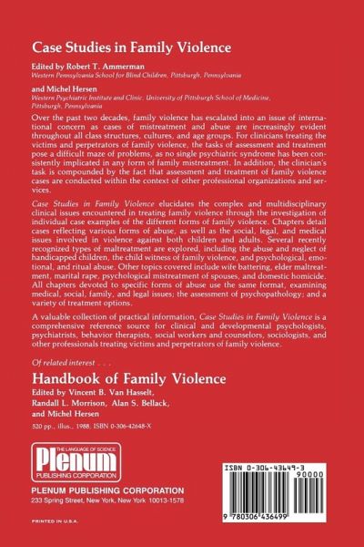 `Ammerman and Hersen address the expanse of types of family violence. ... [O]ne of the few books that can be used by a wide range of readers including lawyers, physicians, mental health professionals, and educators...[and o]f great value to team efforts to prevent, identify, and treat family violence.... The chapters taken together form a powerful picture of the pervasiveness of domestic mistreatment today...'