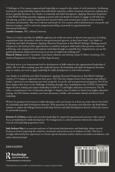 Foreword by Eugene T. W. Sanders, Ph.D.; Introduction to the Collection; Part I: Business and Nonprofit Leadership for Adult Development; Introduction to Part I ; 1 Adult Development and Nonprofit Board Leadership:The Clash of Self-Authoring Minds ; 2 Helping a Nonprofit CEO Pivot Her Leadership Style; 3 Exploring the Role of Emotion and Perceptions of Risk When "Leading From the Middle"; 4 It's Time for Transformation! Using Transformational Leadership to Support Transformational Learning and Attract Emerging Leaders; Part II: Leadership for Adult Development in Crisis Situations; Introduction to Part II; 5 Responding to School Crises through Compassionate Leadership: A District Leader's Journey with COVID-19; 6 Higher Education Leadership in an Unprecedented and Uncertain Environment: The Case of a Midwestern Private Institution; 7 Dr. Remote Instruction: Time Constraints and Critical Consciousness in Crisis Leadership; Part III: Leadership for Adult Development in School Settings; Introduction to Part III; 8 Activating and Sustaining Motivation for Social Justice Leadership in Secondary Education; 9 Learning Transfer: The Missing Link to Leading the Successful Implementation of Professional Development in Schools; 10 Leading for Transformation? The Decisions of New Coaches Matter; 11 We Can Do This! Transformational Leadership for School Improvement; 12 Because They Are Worth It: Utilizing Servant Leadership to Increase First Generation College Persistence; 13 Using a Feminist Approach to Leadership Education to Promote Coaction Among Women Collegiate Student-Athletes; 14 Visionary and Mission-Minded School Leadership Grounded in Adult Learning Theory; 15 Curriculum and Pedagogy Considerations for Connecting Personal Growth and Leadership Development; 16 Preparing Educators to Lead Professional Learning in P-12 Schools: Applying Research on Leadership Development and Adult Learning; 17 The Gap between Theory and Practice: A Scenario from Higher Education; 18 "I Can't Hear You": Incorporating Developmentally Appropriate Feedback for Adults in Balkor Elementary Charter School; 19 The Sharpie Incident: Coloring in the Lines and School Policing of Black Hair