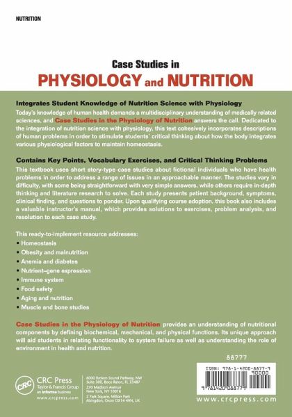 Designed to encourage critical thinking skills, this text of case studies presents a range of conditions including anemia, diabetes, obesity, over- and malnutrition, starvation, parasites, dementia, and vitamin deficiencies. Each study presents patient background, lists symptoms and clinical findings, and poses questions. Another section lists solutions, scientific information, and opportunities for further learning. The text explores nutritional components by defining biochemical, mechanical, and physical functions. The book's format aids students in relating functionality to system failure as well as understanding the role of environment in health and nutrition.