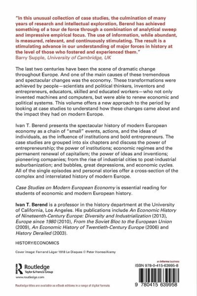 The last two centuries have been the scene of dramatic change throughout Europe. And one of the main causes of these tremendous and spectacular changes was the economy. These transformations were achieved by people: scientists and political thinkers, inventors and entrepreneurs, educators, skilled and educated workers. Who not only invented machines and computers, but were able to renew economic and political systems. This volume, therefore, presents a new approach to the period by looking at case studies to understand how these changes came about and the impact they had on modern Europe. Ivan Berend presents the spectacular history of modern European economy as a chain of "small" events, actions, and the ideas of individuals, as the influence of institutions and bold entrepreneurs. The essays are grouped into six chapters and discuss the power of entrepreneurship; the power of institutions; economic regimes and the permanent renewal of capitalism; the power of ideas and inventions; pioneering companies; from the rise of industrial cities to post-industrial suburbanization; bubbles, great depressions and economic cycles. All of the single episodes and personal stories offer a cross-section of the complex and interrelated history of modern Europe. Case Studies on Modern European Economy will be essential reading for students of economic and modern European history.