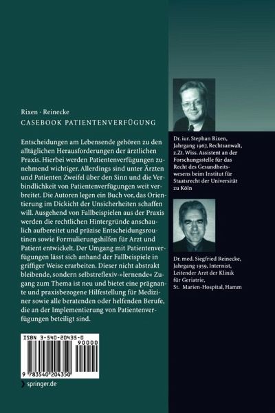 Entscheidungen am Lebensende gehören zu den alltäglichen Herausforderungen der ärztlichen Praxis. Hierbei werden Patientenverfügungen zunehmend wichtiger. Allerdings sind unter Ärzten und Patienten Zweifel über den Sinn und die Verbindlichkeit von Patientenverfügungen weit verbreitet. Die Autoren legen ein Buch vor, das Orientierung im "Dickicht" der Unsicherheiten schaffen will. Ausgehend von Fallbeispielen aus der Praxis werden die rechtlichen Hintergründe anschaulich aufbereitet und präzise Entscheidungsroutinen sowie Formulierungshilfen für Arzt und Patient entwickelt. Der Umgang mit Patientenverfügungen lässt sich anhand der Fallbeispiele in griffiger Weise erarbeiten. Dieser nicht abstrakt bleibende, sondern selbstreflexiv-"lernende" Zugang zum Thema ist neu und bietet eine prägnante und praxisbezogene Hilfestellung für Mediziner sowie alle beratenden oder helfenden Berufe, die an der Implementierung von Patientenverfügungen beteiligt sind.