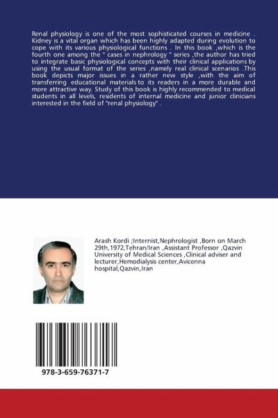 Renal physiology is one of the most sophisticated courses in medicine . Kidney is a vital organ which has been highly adapted during evolution to cope with its various physiological functions . In this book ,which is the fourth one among the " cases in nephrology " series ,the author has tried to integrate basic physiological concepts with their clinical applications by using the usual format of the series ,namely real clinical scenarios .This book depicts major issues in a rather new style ,with the aim of transferring educational materials to its readers in a more durable and more attractive way. Study of this book is highly recommended to medical students in all levels, residents of internal medicine and junior clinicians interested in the field of "renal physiology" .