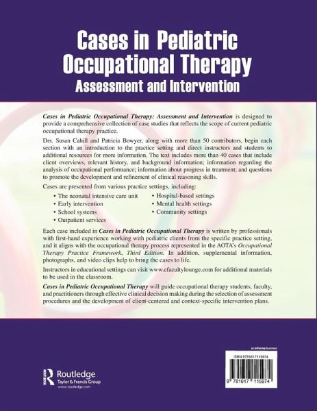 Cases in Pediatric Occupational Therapy: Assessment and Intervention is designed to provide a comprehensive collection of case studies that reflects the scope of current pediatric occupational therapy practice. .
