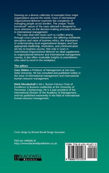 Drawing on a diverse collection of examples from major organizations around the world, Cases in International Organizational Behavior examines the complexity of managing people across boarders. The unique "multi-functional" nature of the case selected is designed to focus attention on the decision-making processes involved in international management. The cases deal with issues such as conflict arising through cross-cultural interaction; the differing worldwide perception and value of business ethics; the importance of understanding local organizational designs; and how appropriate leadership, motivation, and communication are key to business success. Not only is Cases in International Organizational Behavior an ideal supplement to organizational behavior and international management courses, it also offers invaluable insights to practitioners who need to excel in the workplace.