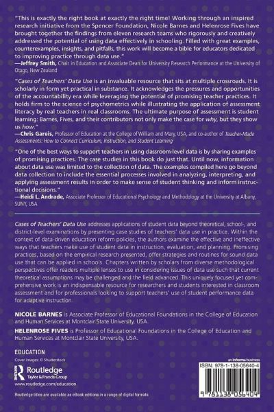 Preface Helenrose Fives and Nicole Barnes; Foreword James Spillane 1. Context for Data Use and the Emergence of Promising Practices Andrea Conklin Bueschel 2. Teachers' Practice Based Data Use Strategies Helenrose Fives and Nicole Barnes 3. Following the Path of Greatest Persistence: Sensemaking Data Use and the Everyday Practice of Teaching Carolyn J. Riehl Hester Earle Pavithra Nagarajan Tara E. Schwitzman and Laura Vernikoff 4. Using a Learning Trajectory to Make Sense of Student Work for Instruction Caroline B. Ebby 5. From Focusing on Grades to Exploring Student Thinking: A Case Study of Change in Assessment Practice Stephanie Rafanelli Hilda Borko Matthew Kloser and Matthew Wilsey 6. Using Data Meaningfully to Teach for Understanding in Middle School Science Melissa Braaten Chris Bradford Sadie Fox Barocas and Kathryn L. Kirchgasler 7. Using Standardized Test Data as a Starting Point for Inquiry: A Case of Thoughtful Compliance Brette Garner and Ilana Horn 8. Beyond Matchmaking: Considering Aims for Teacher Data Use Margaret Evans Priya LaLonde Nora Gannon-Slater Hope Crenshaw Rebecca Teasdale Jennifer Green and Thomas Schwandt 9. Moving Beyond Academic Achievement: Using Non-Academic Data to Identify and Support Struggling Students Tammy Kolbe Katharine G. Shepherd and Jonathan Sessions 10. "Everyone's Responsibility": Effective Team Collaboration and Data Use Amanda Datnow Vicki Park and Bailey Choi 11. Adjustment in Practice: A Critical Response to Data-Driven Instruction Nora M. Isacoff Dana Karin and Joseph P. McDonald12. Promising Practices for Data Use for Literacy and Language Development of Kindergarten Students Tonya R. Moon Catherine M. Brighton Jordan M. Buckrop Kerrigan Mahoney and Marcia A. Invernizzi