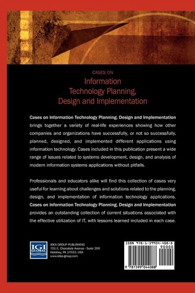 Brings together real-life experiences showing how other companies and organizations have successfully, or not so successfully, planned, designed, and implemented different applications using information technology. This work includes cases that present a range of issues related to systems development, and more.