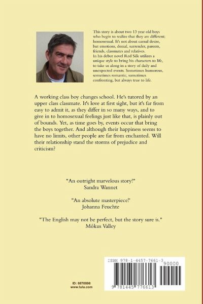 This story is about two 13 year old boys who begin to realize that they are different; homosexual. It's not about carnal desire, but emotions, denial, surrender, parents, friends, classmates and relatives. In his debut novel Red Silk utilizes a unique style to bring his characters to life, to take us along in a story of daily and unexpected events. Sometimes humorous, sometimes romantic, sometimes confronting, but always true to life. A working class boy changes school. He's tutored by an upper class classmate. It's love at first sight, but it's far from easy to admit it, as they differ in so many ways, and to give in to homosexual feelings just like that, is plainly out of bounds. Yet, as time goes by, events occur that bring the boys together. And although their happiness seems to have no limits, other people are far from enchanted. Will their relationship stand the storms of prejudice and criticism?