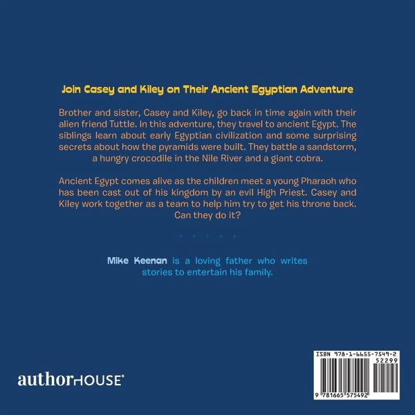 Join Casey and Kiley on Their Ancient Egyptian Adventure Brother and sister, Casey and Kiley, go back in time again with their alien friend Tuttle. In this adventure, they travel to ancient Egypt. The siblings learn about early Egyptian civilization and some surprising secrets about how the pyramids were built. They battle a sandstorm, a hungry crocodile in the Nile River and a giant cobra. Ancient Egypt comes alive as the children meet a young Pharaoh who has been cast out of his kingdom by an evil High Priest. Casey and Kiley work together as a team to help him try to get his throne back. Can they do it?