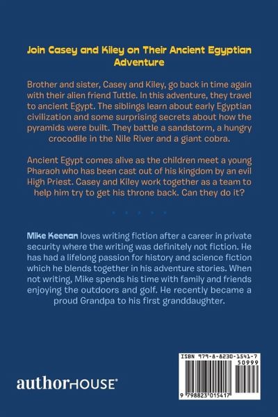 Join Casey and Kiley on Their Ancient Egyptian Adventure Brother and sister, Casey and Kiley, go back in time again with their alien friend Tuttle. In this adventure, they travel to ancient Egypt. The siblings learn about early Egyptian civilization and some surprising secrets about how the pyramids were built. They battle a sandstorm, a hungry crocodile in the Nile River and a giant cobra. Ancient Egypt comes alive as the children meet a young Pharaoh who has been cast out of his kingdom by an evil High Priest. Casey and Kiley work together as a team to help him try to get his throne back. Can they do it?