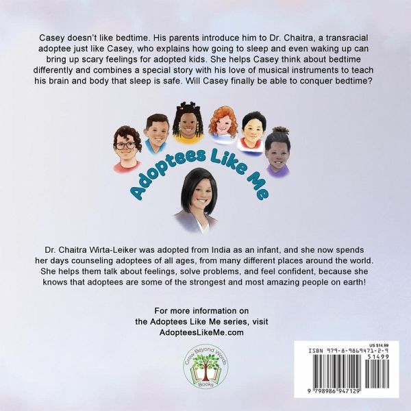 Casey doesn't like bedtime. His parents introduce him to Dr. Chaitra, a transracial adoptee just like Casey, who explains how going to sleep and even waking up can bring up scary feelings for adopted kids. She helps Casey think about bedtime differently and combines a special story with his love of musical instruments to teach his brain and body that sleep is safe. Will Casey finally be able to conquer bedtime? Dr. Chaitra Wirta-Leiker is an international and transracial adoptee from India. She traveled to the United States as a tiny baby, escorted in a basket with three other babies, and she's pretty sure that's why she likes her space when she sleeps now. She loves spending time with other adoptees of all ages, including her own child, because she knows about all the remarkable things that can happen when adoptees connect with each other. Dr. Chaitra wishes that every single adopted person in the world could visit her therapy office and talk with her about what it's like to be an adoptee, but because that's not possible, she decided to invite everyone into her therapy room by creating the "Adoptees Like Me" illustrated book series to reach early readers at an age when school is relatively new and children are keenly attuned to differences, which can raise a host of challenges for young adoptees. In each story, we learn what it's like to be in therapy with a professional who understands how it feels to be adopted, and readers gain insights and tools they can use in their daily lives. The diverse set of characters, family situations, and topics in the series give every young adoptee a chance to see themselves represented, find their voice, and feel understood. CASEY CONQUERS BEDTIME is the second book in Dr. Chaitra's "Adoptees Like Me" series, joining MARIE DISCOVERS HER SUPERPOWERS (2022). Learn more at AdopteesLikeMe.com. EDITORIAL REVIEWS ¿"Every child who has experienced early trauma or loss needs this book. It is a gentle and clear guide not only for navigating bedtime, but for understanding trauma and how to overcome the messages it leaves in the body."-ELI HARWOOD, LPC, Founder of Attachment Nerd "There are so many reasons bedtime battles have been an issue in my work as a therapist (and a mom). For kids who have experienced loss or trauma, there is often an extra layer! Find language, tools, and more in this honest, uplifting story. I especially love that the author shares her lived experience, helping adoptees both tap into their inner strength and know they are not alone."-JESSICA SINARSKI, author of Riley the Brave series and My Magic Backpack series