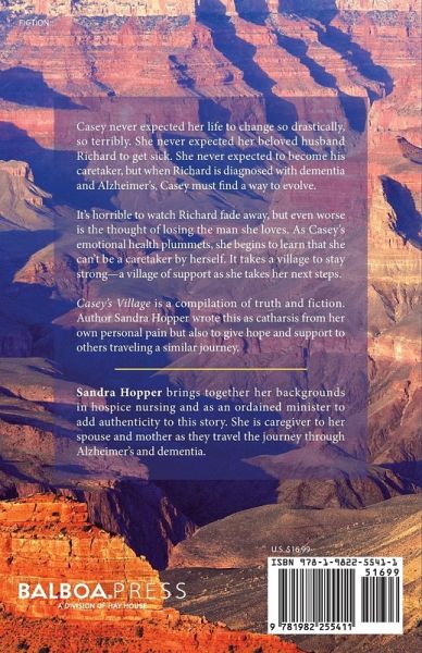 Casey never expected her life to change so drastically, so terribly. She never expected her beloved husband Richard to get sick. She never expected to become his caretaker, but when Richard is diagnosed with dementia and Alzheimer's, Casey must find a way to evolve. It's horrible to watch Richard fade away, but even worse is the thought of losing the man she loves. As Casey's emotional health plummets, she begins to learn that she can't be a caretaker by herself. It takes a village to stay strong-a village of support as she takes her next steps. Casey's Village is a compilation of truth and fiction. Author Sandra Hopper wrote this as catharsis from her own personal pain but also to give hope and support to others traveling a similar journey.