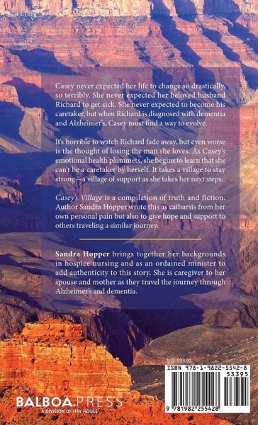 Casey never expected her life to change so drastically, so terribly. She never expected her beloved husband Richard to get sick. She never expected to become his caretaker, but when Richard is diagnosed with dementia and Alzheimer's, Casey must find a way to evolve. It's horrible to watch Richard fade away, but even worse is the thought of losing the man she loves. As Casey's emotional health plummets, she begins to learn that she can't be a caretaker by herself. It takes a village to stay strong-a village of support as she takes her next steps. Casey's Village is a compilation of truth and fiction. Author Sandra Hopper wrote this as catharsis from her own personal pain but also to give hope and support to others traveling a similar journey.