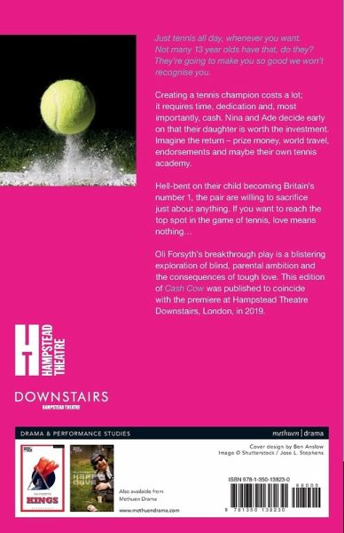 Just tennis all day, whenever you want. Not many 13 year olds have that, do they? They're going to make you so good we won't recognise you. Creating a tennis champion costs a lot; it requires time, dedication and, most importantly, cash. Nina and Ade decide early on that their daughter is worth the investment. Imagine the return - prize money, world travel, endorsements and maybe their own tennis academy. Hell-bent on their child becoming Britain's number 1, the pair are willing to sacrifice just about anything. If you want to reach the top spot in the game of tennis, love means nothing. Oli Forsyth's breakthrough play is a blistering exploration of blind, parental ambition and the consequences of tough love.