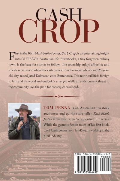 First in the Rich Man's Justice Series, Cash Crop, is an entertaining insight into OUTBACK Australia life. Burrabooka, a tiny forgotten railway town, is the base for stories to follow. The township enjoys affluence and shields secrets as to where the cash comes from. Financial adviser and 26-year old, city-raised Jared Dalmazzo visits Burraboka. This raw rural life is foreign to him and his world and outlook is changed while undercurrent threat to the community lays the path for consequences ahead.