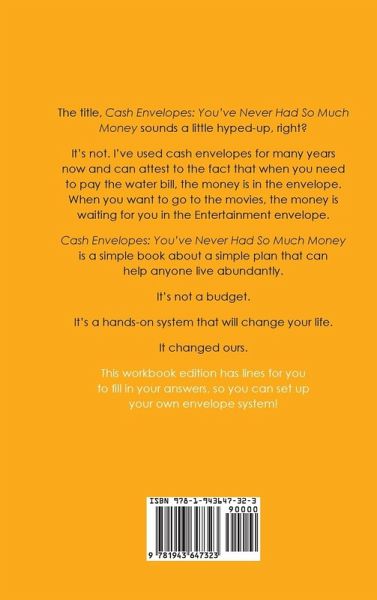 The title, Cash Envelopes: You've Never Had So Much Money sounds a little hyped-up, right? It's not. I've used cash envelopes for many years now and can attest to the fact that when you need to pay the water bill, the money is in the envelope. When you want to go to the movies, the money is waiting for you in the Entertainment envelope. Cash Envelopes: You've Never Had So Much Money is a simple book about a simple plan that can help anyone live abundantly. It's not a budget. It's a hands-on system that will change your life. It changed ours.