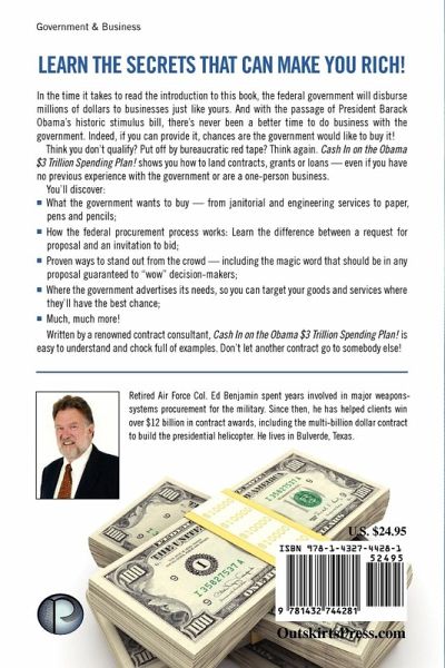 This book is destined to be a big seller. With unemployment climbing through the roof, the Federal government under Obama is pouring money into the economy and its budget will exceed $3 trillion dollars. This best seller will provide your customers with a step-by-step guide to making money from both Federal and state governments and will also show them how they can qualify for grants, loans and other assistance from the government. 3,000,000,000,000...it's a big number isn't it? To spend $3 trillion dollars in a year the government must spend over $340 million per hour or $95,000 per second! In the time it takes your customer reads this book, the government will give somebody else hundreds of millions of dollars. Why don't YOU give your customers an opportunity to get some of that money? This is a sure-fire seller! A few hours invested in this book studying this proven system will help your customers' cash in on your piece of President Obama's $3 trillion pie. This amazing book is designed for the individual who wants to learn how to cash in on the government bonanza. Among the contents, it shows your customers -The regulations covering government procurement; -Describes how federal and state government buy goods and services; -Illustrates where to find opportunities; and -Provides the reader with a step-by-step guide to preparing a successful proposal and grant request (using the same techniques which the author used to obtain over $12 billion in contract awards for his clients). This best seller comes with an attractive 50% bookseller trade discount. Don't delay . . . Order this best seller today!