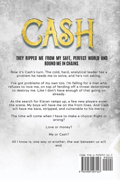 They ripped me from my safe, perfect world and bound me in chains. Now it's Cash's turn. The cold, hard, analytical leader has a problem he needs me to solve, and he's not asking. I've got problems of my own too. I'm falling for a man who refuses to love me, on top of fending off a threat determined to destroy me. Like I don't have enough of that going on already. As the search for Kieran ramps up, a few new players enter the scene. My boys will have me on the front lines. And Cash will have me bare, stripped, and vulnerable to his mercy. The time will come when I have to make a choice: Right or wrong? Love or money? Me or Cash? All I know is, one way or another, the war between us will end.