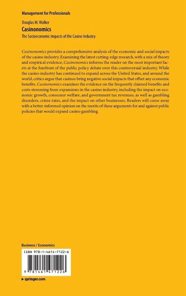 Casinonomics provides a comprehensive analysis of the economic and social impacts of the casino industry. Examining the latest cutting-edge research, with a mix of theory and empirical evidence, Casinonomics informs the reader on the most important facets at the forefront of the public policy debate over this controversial industry. While the casino industry has continued to expand across the United States, and around the world, critics argue that casinos bring negative social impacts that offset any economic benefits. Casinonomics examines the evidence on the frequently claimed benefits and costs stemming from expansions in the casino industry, including the impact on economic growth, consumer welfare, and government tax revenues, as well as gambling disorders, crime rates, and the impact on other businesses. Readers will come away with a better-informed opinion on the merits of these arguments for and against public policies that would expand casino gambling.