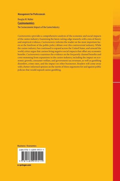 Casinonomics provides a comprehensive analysis of the economic and social impacts of the casino industry. Examining the latest cutting-edge research, with a mix of theory and empirical evidence, Casinonomics informs the reader on the most important facets at the forefront of the public policy debate over this controversial industry. While the casino industry has continued to expand across the United States, and around the world, critics argue that casinos bring negative social impacts that offset any economic benefits. Casinonomics examines the evidence on the frequently claimed benefits and costs stemming from expansions in the casino industry, including the impact on economic growth, consumer welfare, and government tax revenues, as well as gambling disorders, crime rates, and the impact on other businesses. Readers will come away with a better-informed opinion on the merits of these arguments for and against public policies that would expand casino gambling.