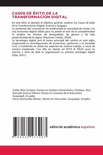 En este libro se planteó el objetivo general, analizar los Casos de éxito de la Transformación Digital: Estonia y Singapur.La pandemia del coronavirus ha evidenciado la necesidad de contar con una economía digital sólida para no perder el tren de la competitividad ni ampliar las brechas de desigualdad, de género y de baja productividad de la region (Naciones Unidas, 2020).La tecnología digital será el motor principal del cambio en este siglo, propiciando la reconfiguración de economías, gobiernos y la sociedad civil, e incidiendo en todos los aspectos de nuestro trabajo, a veces de manera inesperada. Con ello en mente, en 2019 el PNUD puso en marcha a nivel de toda la organización su primera estrategia digital (Opp, 2021).